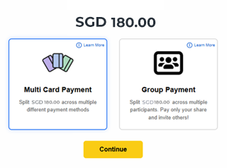 They can split the total by amount, percentage, or evenly among cards or group members.